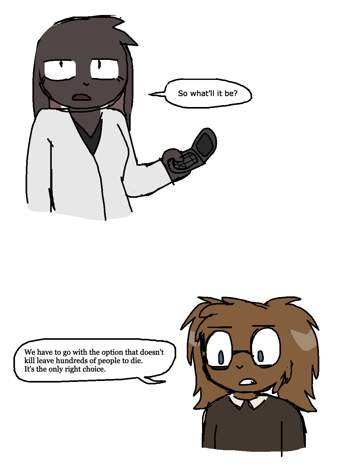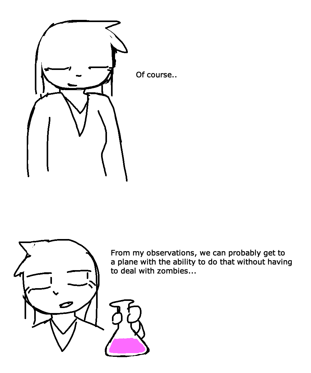 end-vampire-discrimination: Option three: I have a some Highly Concentrated Zombic Cell Destruction Formula. It targets only infected cells and destroys them. We can use the plane to dust it all over the town. The zombies will die. Hundreds of innocent people will be saved. The downside is that the people who know about us being vamps - the people who harass us, doxx us, shun us - they will live too. It will not matter that we just saved their lives. We are vampires and that is all they care about. That is all we will be for the rest of our lives.